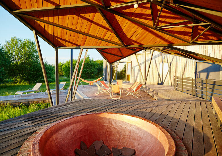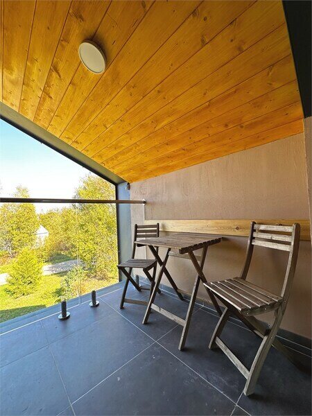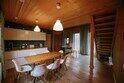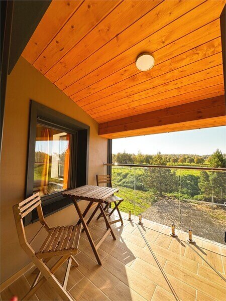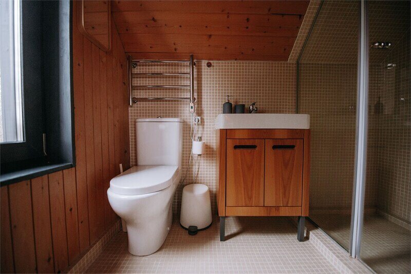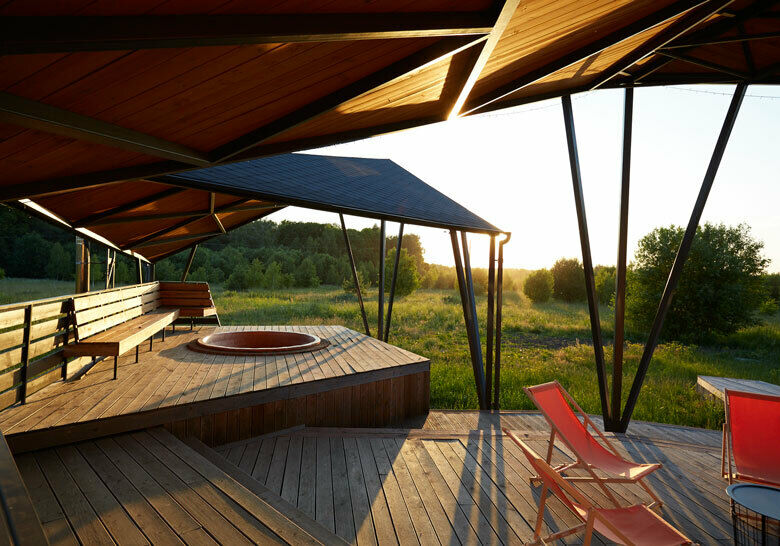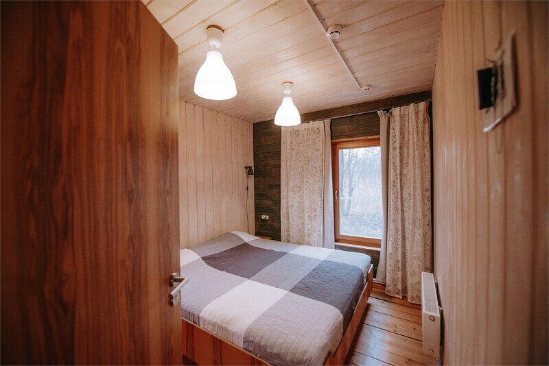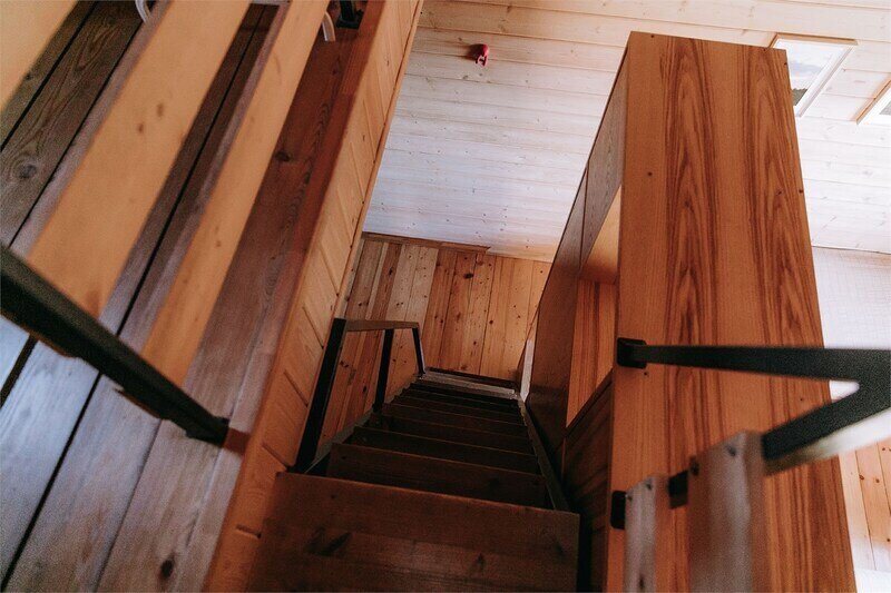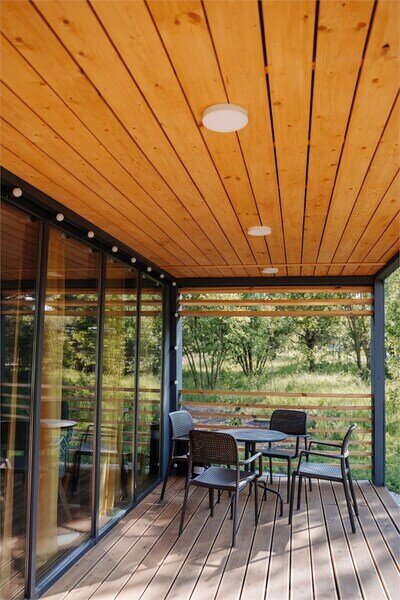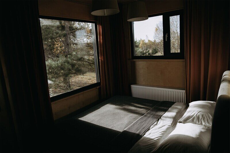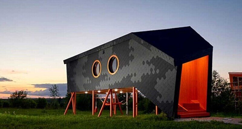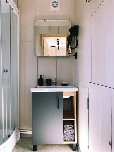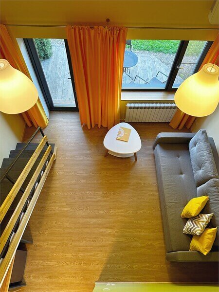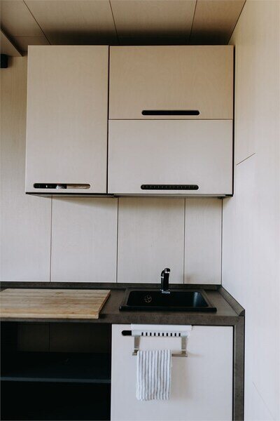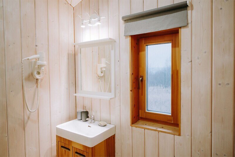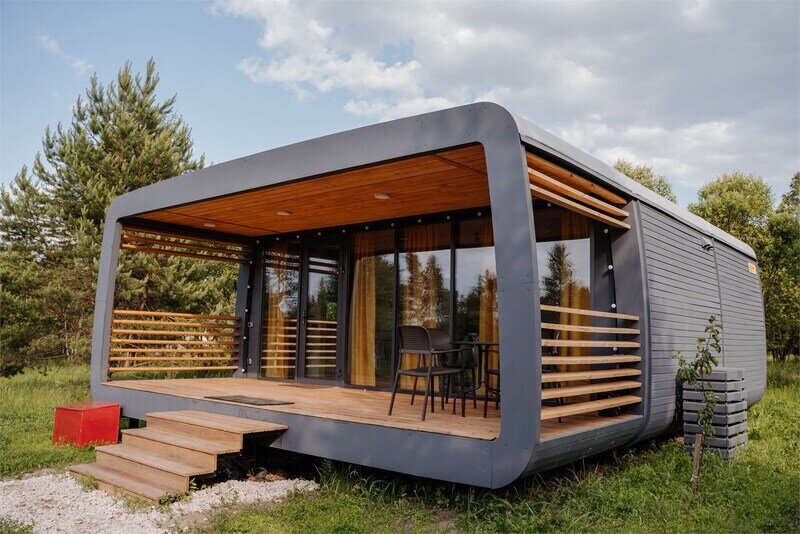 Компактные авторские архитектурные дома с панорамным видом на лес. В доме две двуспальные кровати на 2 уровнях, зона гостиной, оборудованная кухня, санузел с душем, утюг, гладильная доска.