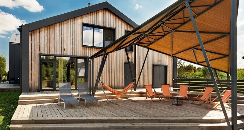 Дома-коровы – это компактные авторские архитектурные дома, которые имеют только 2-ой этаж и огромное панорамное окно в гостиной - спальне во всю торцевую стену.