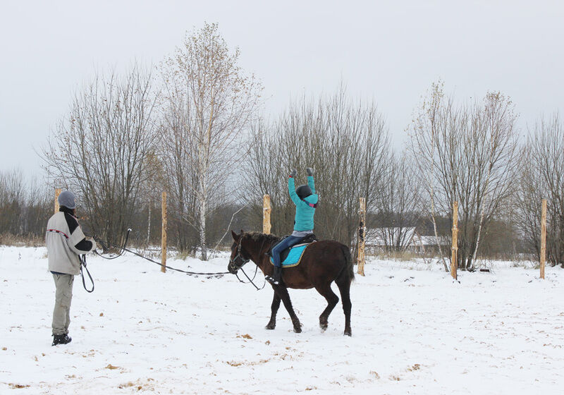 Обучение верховой езде. Это занятие рассчитано на развитие равновесия, снятие боязни высоты и скованности детей при первых опытах верховой езды.