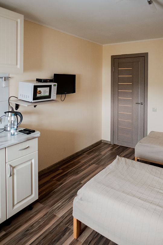 Номер студия для двоих человек в гостиничном комплексе.
