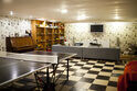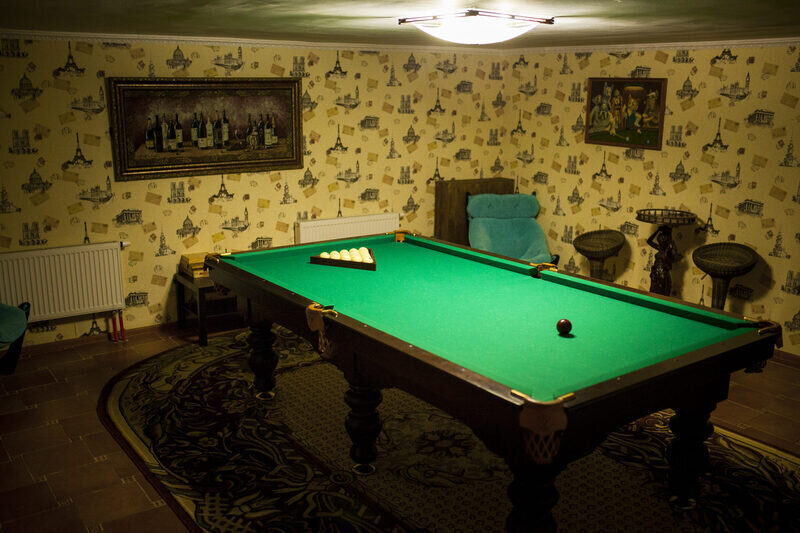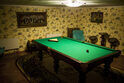 На цокольном этаже большого дома расположен бильярдный стол для веселого времяпровождения.
