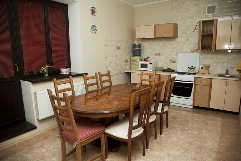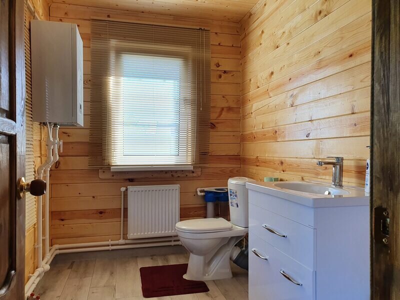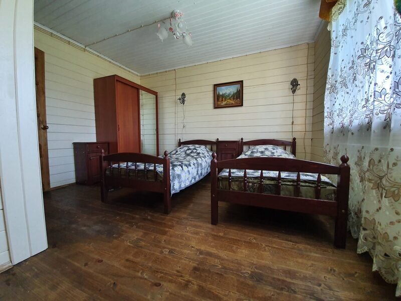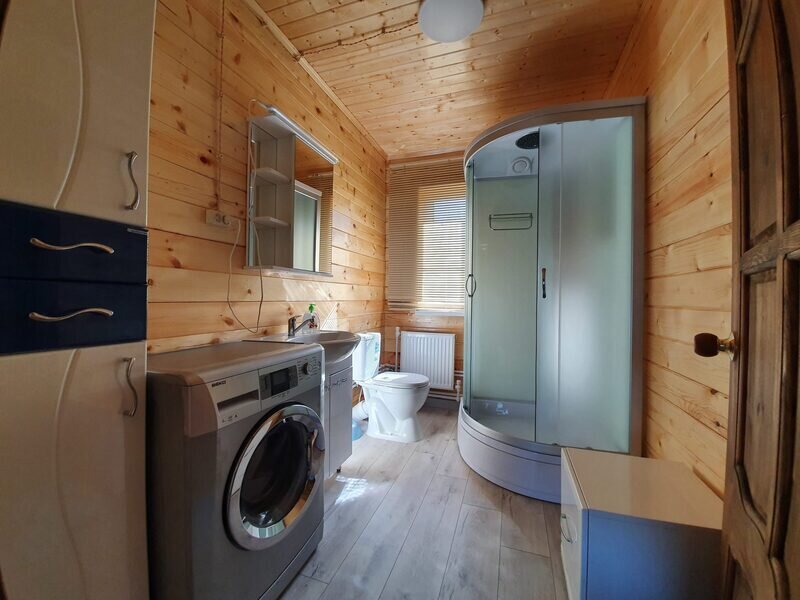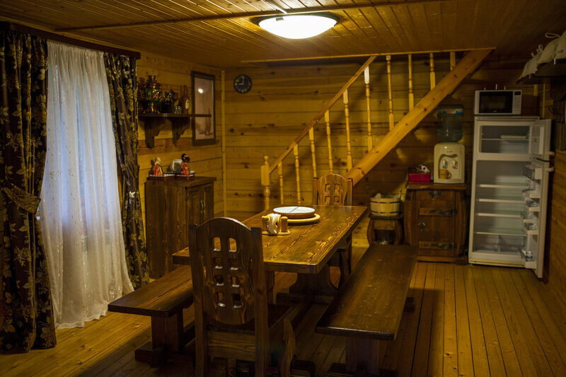 Домик для аренды представляет собой уютное и комфортабельное размещение на территории базы отдыха. На первом этаже расположены 4 номера, из которых 3 имеют балкон, оборудованная кухня, а также туалет и душевая.