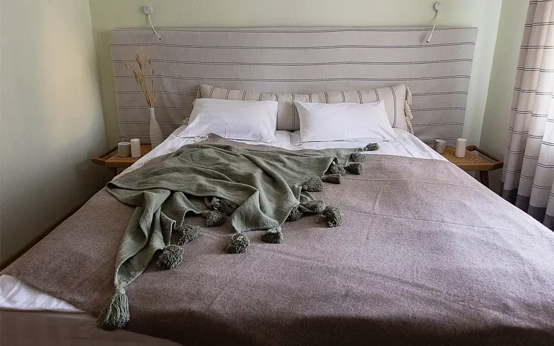 Коттеджи-дуплексы построены из камня. В каждом из них — по два номера, объединенных общей стеной, но со своим отдельным входом.