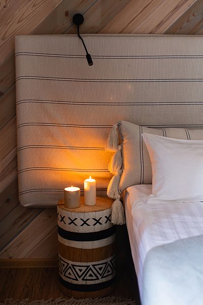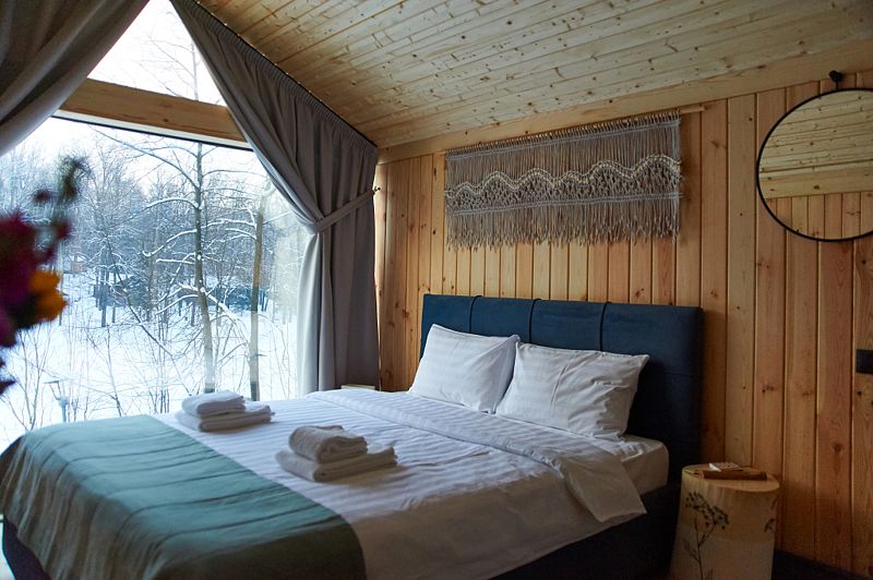 Изготовлены из дерева с натуральным утеплителем на основе льна, обработаны защитными составами из масла и воска. Внутри они оснащены всем необходимым, чтобы гости могли забыть о городской суете, но при этом наслаждаться привычным комфортом гостиничных апартаментов.