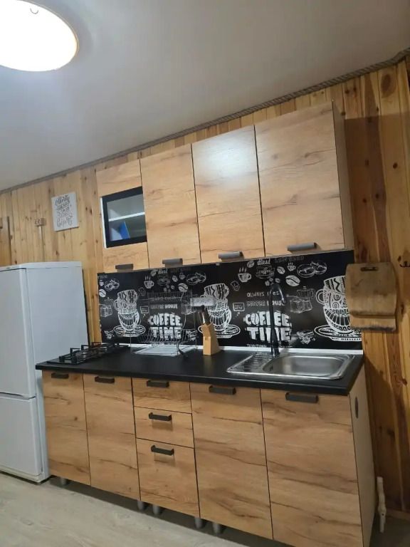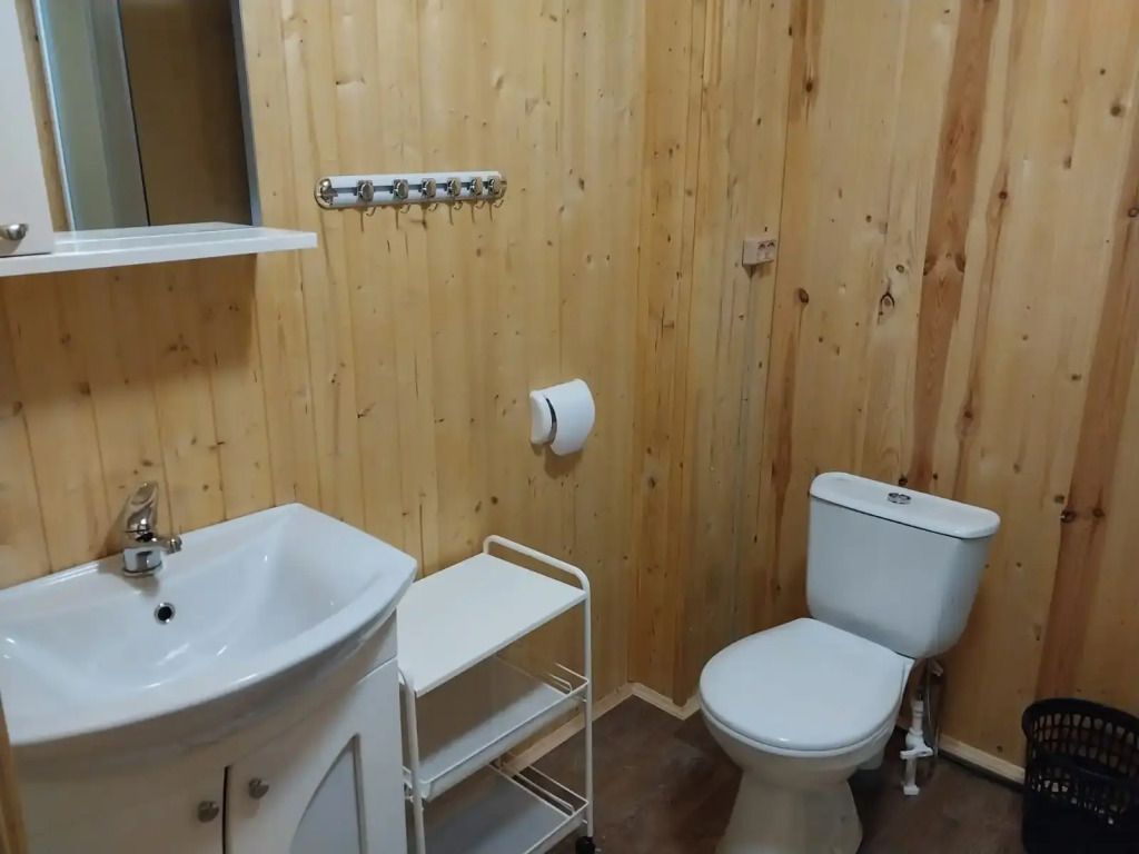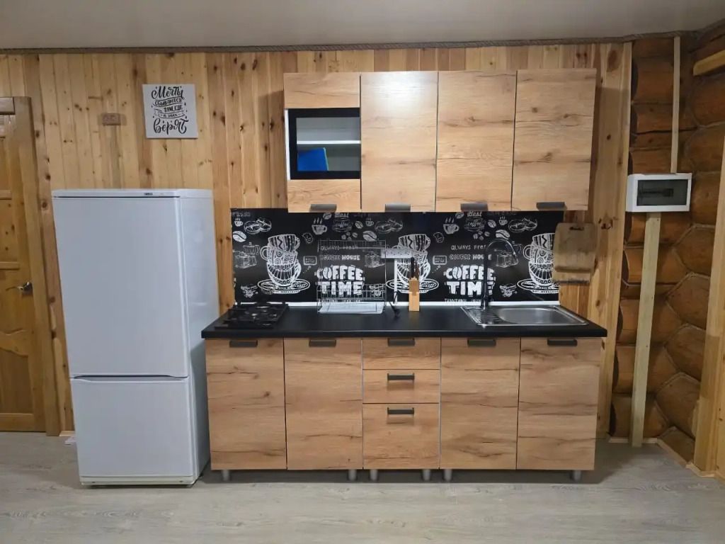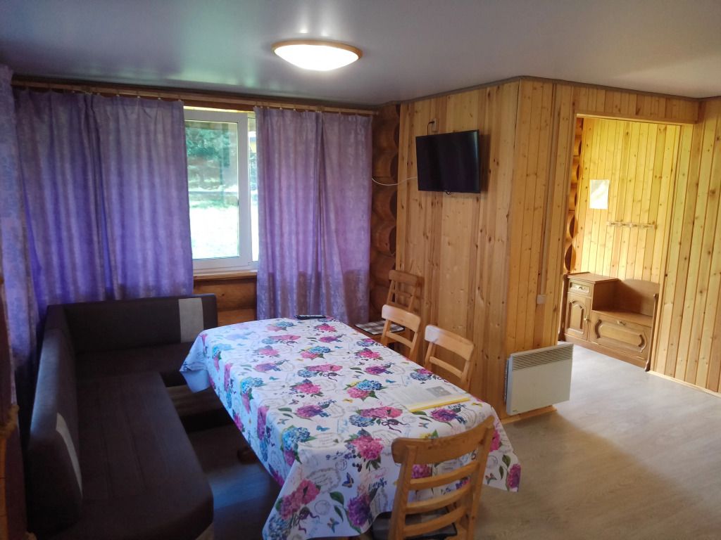 Дом оснащён просторной гостиной, полностью оборудованной кухней и отдельной ванной комнатой. Из окон открывается живописный вид на озеро. Возле домика расположена беседка и мангальная зона.