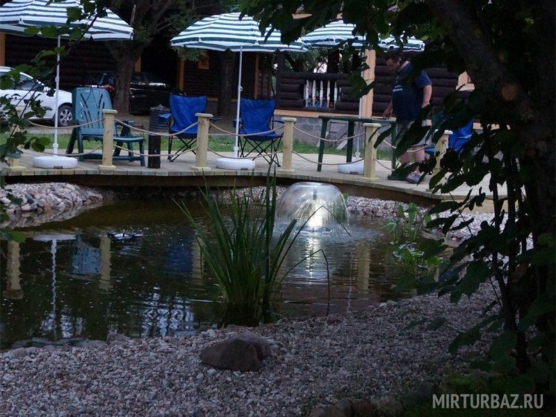 На территории расположен пруд с фонтаном.