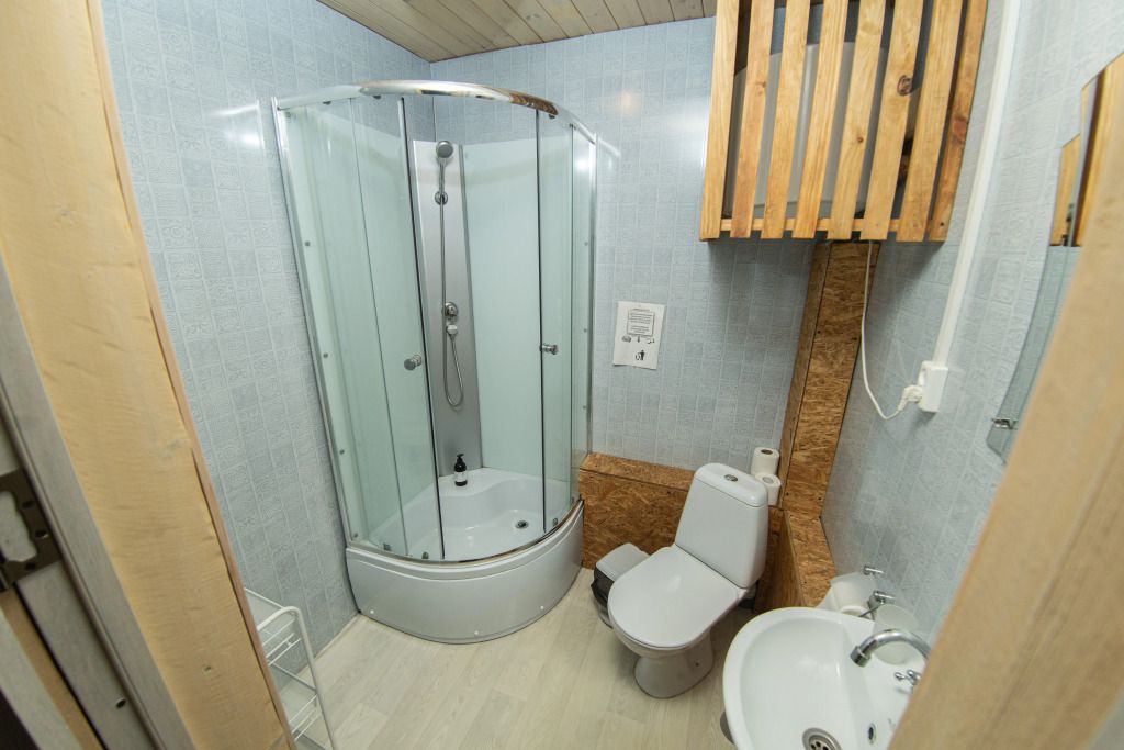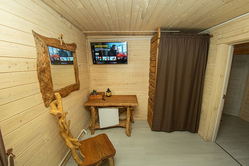 В номере – свой санузел с душем, фен, телевизор, холодильник и рабочее место, белоснежные полотенца и простыни, а ещё мягкий, пушистый халат. В отличие от домов, номера даже в выходные можно снять на сутки.