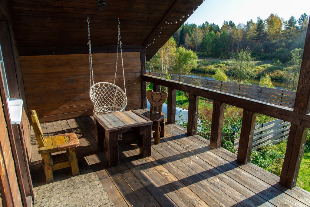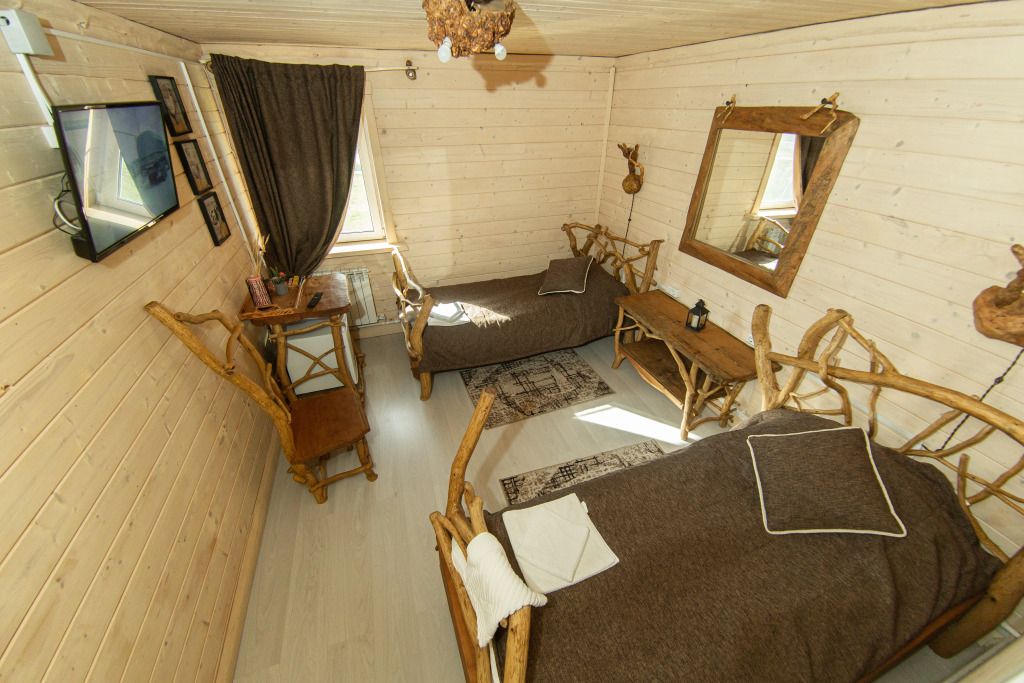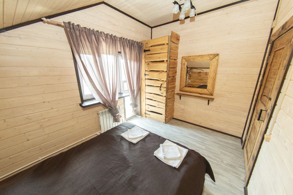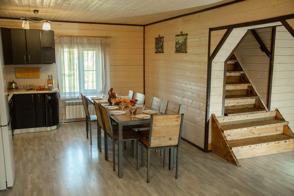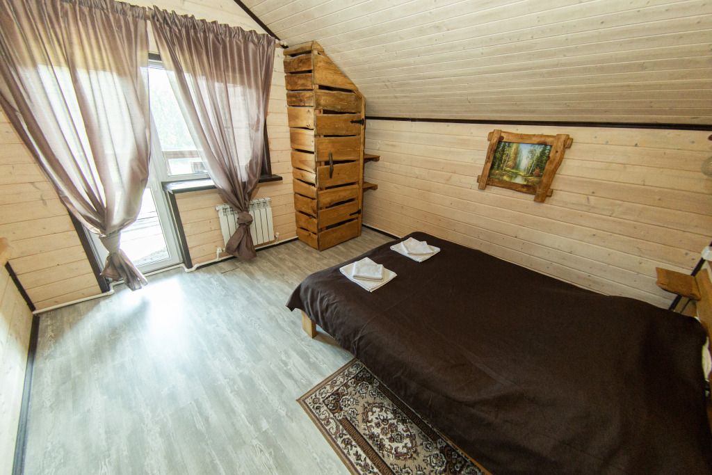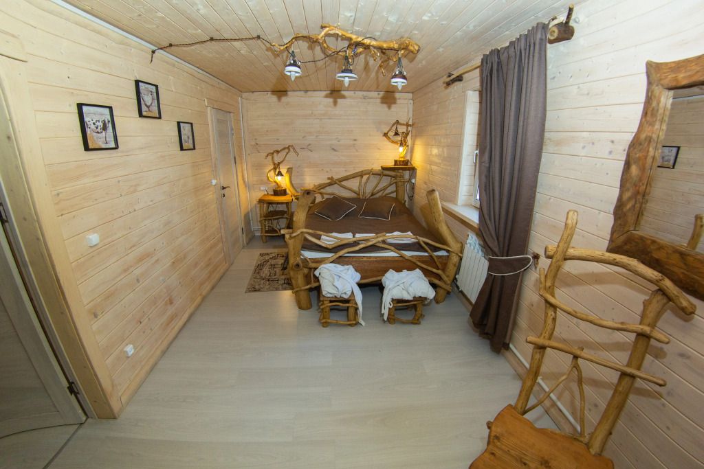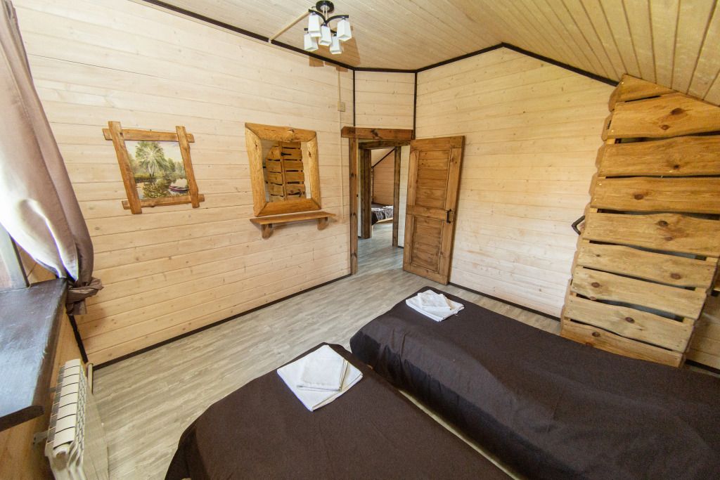 Самый большой дом Эко-отеля «Агроусадьба Павлова». Дом рассчитан на 8 гостей. В нем 4 спальни, большие гостиная и столовая, бильярдная, летняя веранда со столом, лоджия с прекрасным видом на реку и подвесными креслами на втором этаже и собственная сауна, которую по запросу можно натопить прямо к приезду. На каждом этаже свой санузел с душем.