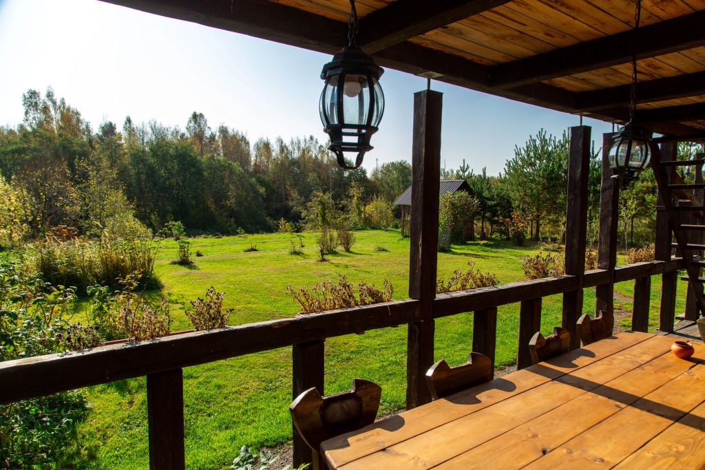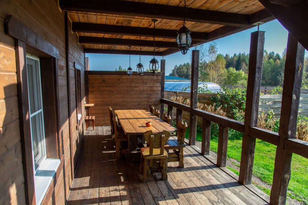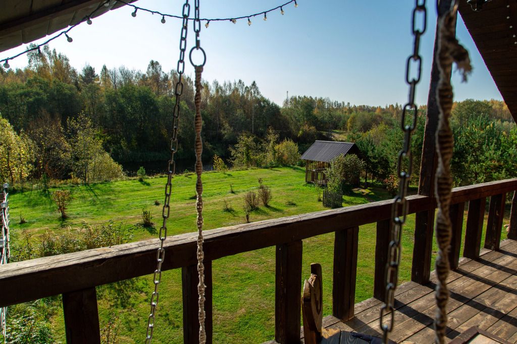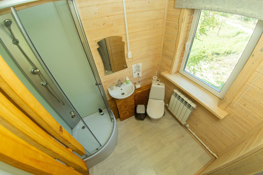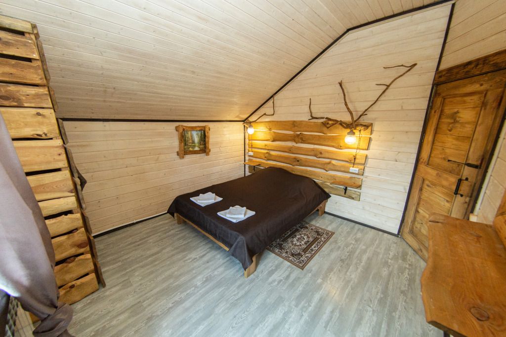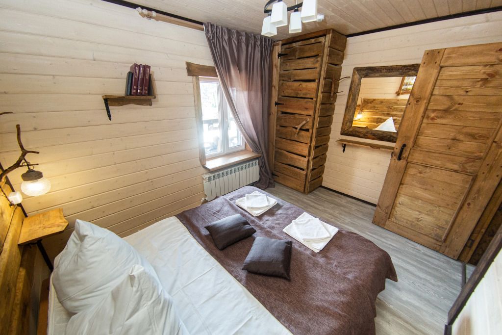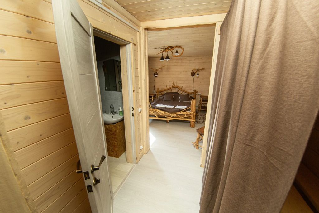 Самый большой дом Эко-отеля «Агроусадьба Павлова». Дом рассчитан на 8 гостей. В нем 4 спальни, большие гостиная и столовая, бильярдная, летняя веранда со столом, лоджия с прекрасным видом на реку и подвесными креслами на втором этаже и собственная сауна, которую по запросу можно натопить прямо к приезду. На каждом этаже свой санузел с душем.