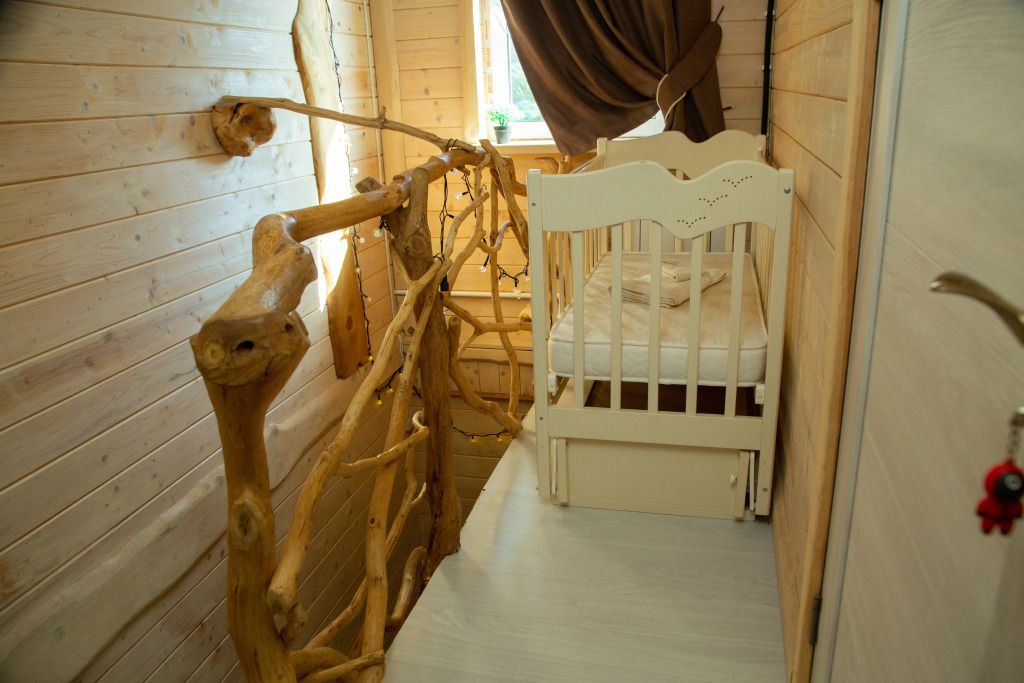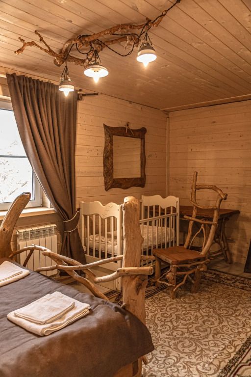 В каждом из домов есть детская кроватка для малышей до 3-х лет, по запросу могут установить её в одну из спален. Гости корпуса с номерами также могут предварительно сообщить о необходимости кроватки в номере.