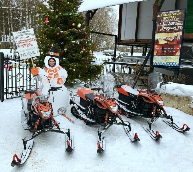 Снегоход «YAMAHA VIKING»: 1200 ₽/час + ГСМ; Сани — 1000 ₽/день.