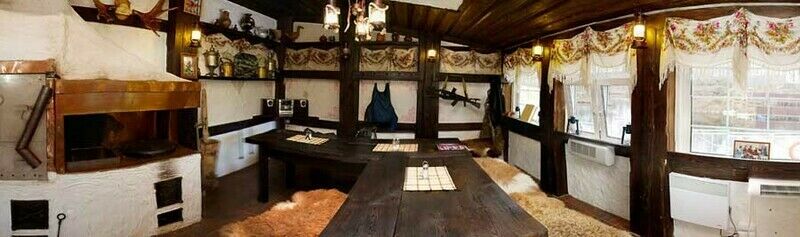 Ресторан сделан в старорусском стиле, а центром ансамбля является настоящая, действующая русская печь.