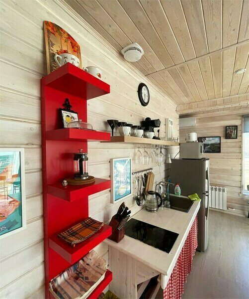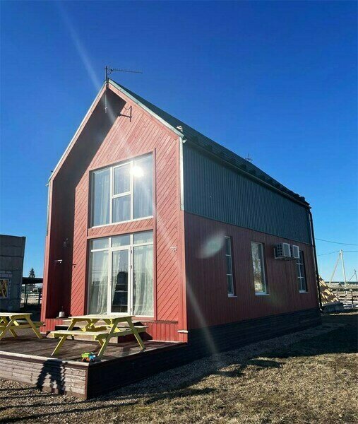 Гостевой дом до 8 чел. С панорамным видом. Рядом с домом расположена ферма. На 1-м этаже расположена гостиная с кухней, спальня, холл. 2-й этаж: 2 спальни, санузел с душевой кабиной.