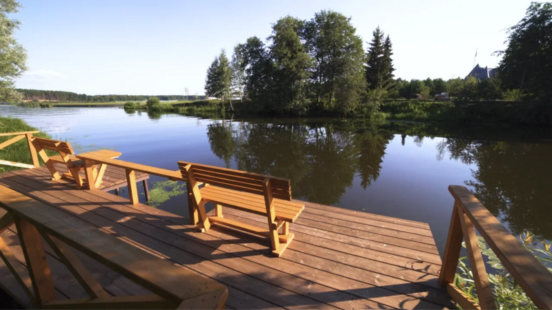 Пойманную вами рыбу можно пожарить на гриле прямо в беседке «Домик на пруду» или в «Домике рыбака», оборудованном мангальной зоной.