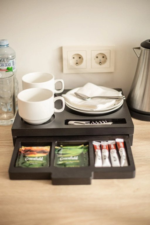 В номере гостям предоставляется все необходимое для комфортного проживания, включая косметические принадлежности, тапочки, набор полотенец, гладильный набор, плазменную панель ТВ, мини-холодильник, чайная станция, телефон внутренней связи, фен, WI-FI.