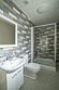 В ванной - маленькие флакончики с шампунем, гелем для душа, кондиционером, фен и наборы для чистки зубов.