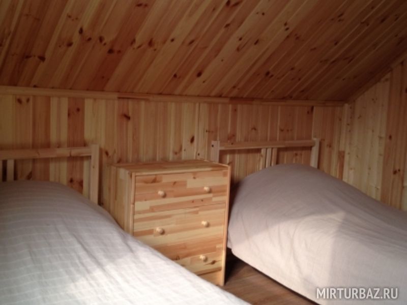 - бани — отдельные деревянные дома с выходом к озеру (в первой бане комната отдыха с парилкой, во второй только парилка);