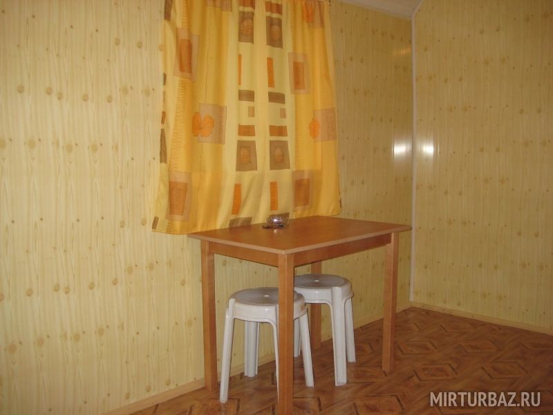 В домиках имеются спальные кровати с необходимыми принадлежностями, обеденный стол и стулья.