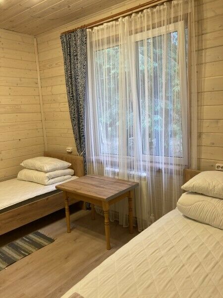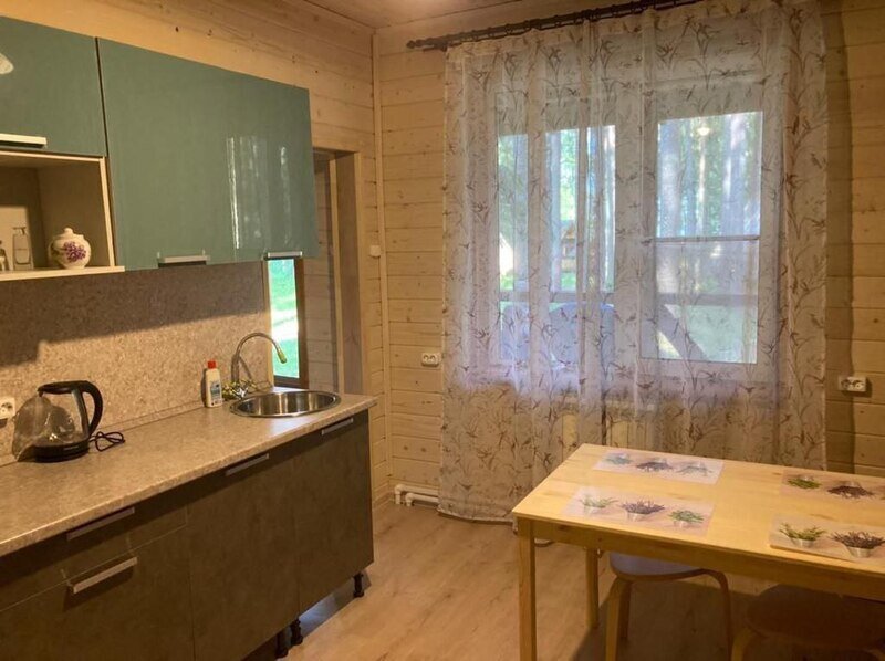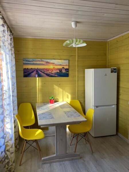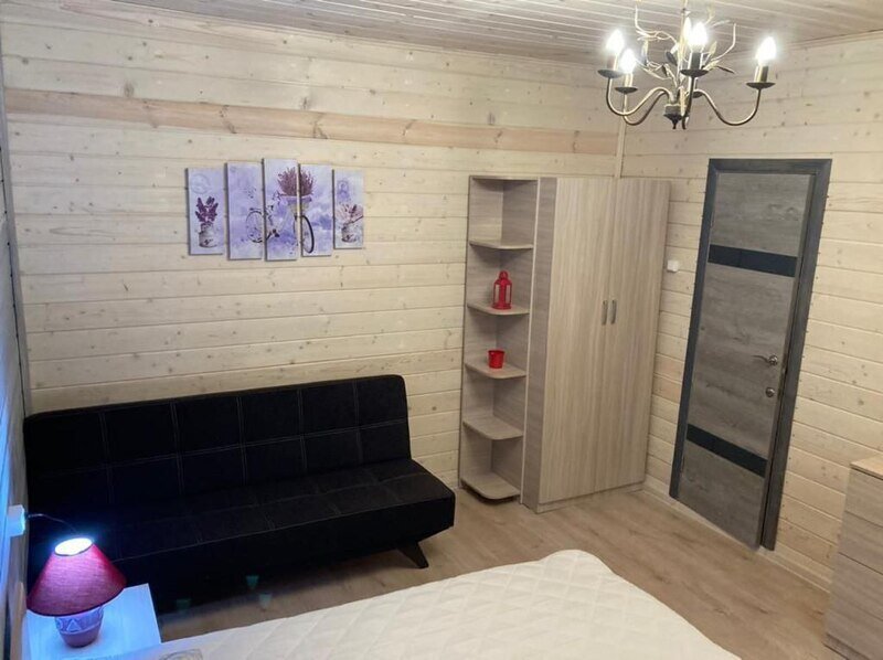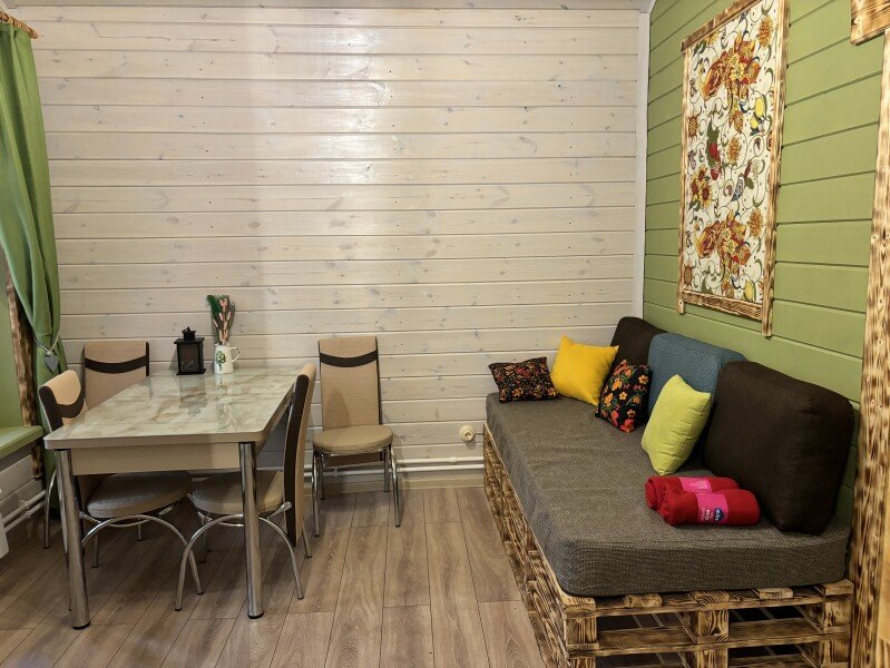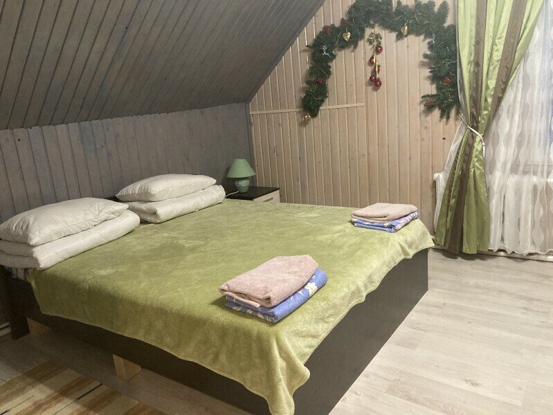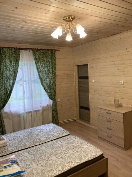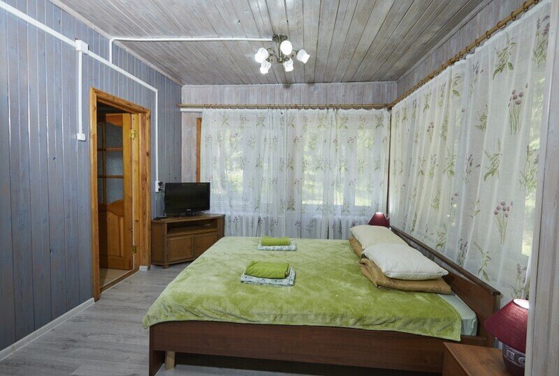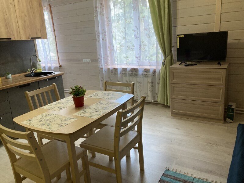 Номер в новом большом отапливаемом доме, с отдельным входом, для проживания до четырех гостей. В номере одна спальня, в которой две односпальные кровати ( спальное место 90 см) и диван кровать (спальное место 110 см). В кухне холодильник, электрическая варочная панель на 3 конфорки, электрический чайник, телевизор с плоским экраном, обеденная зона, посуда и кухонные принадлежности. Вход в санузел и душевую из спальни. На веранде стол и стулья. Возможно предоставление детской кроватки за дополнительную плату. Возможно проживание с домашними животными.