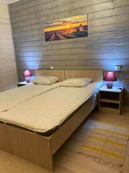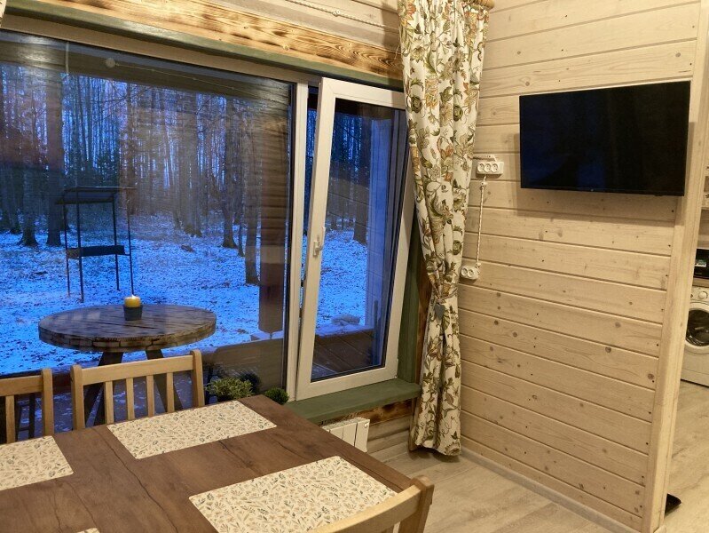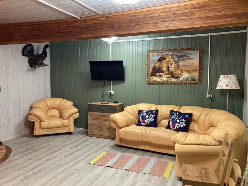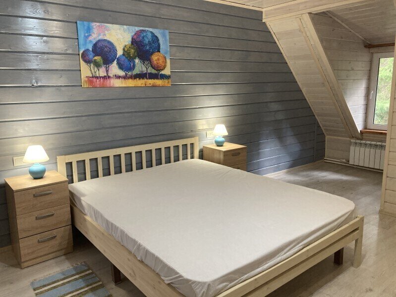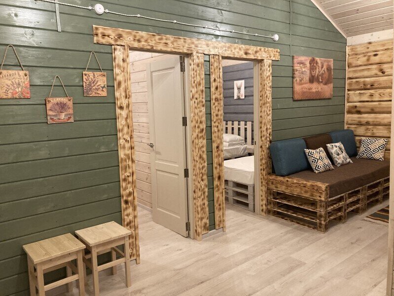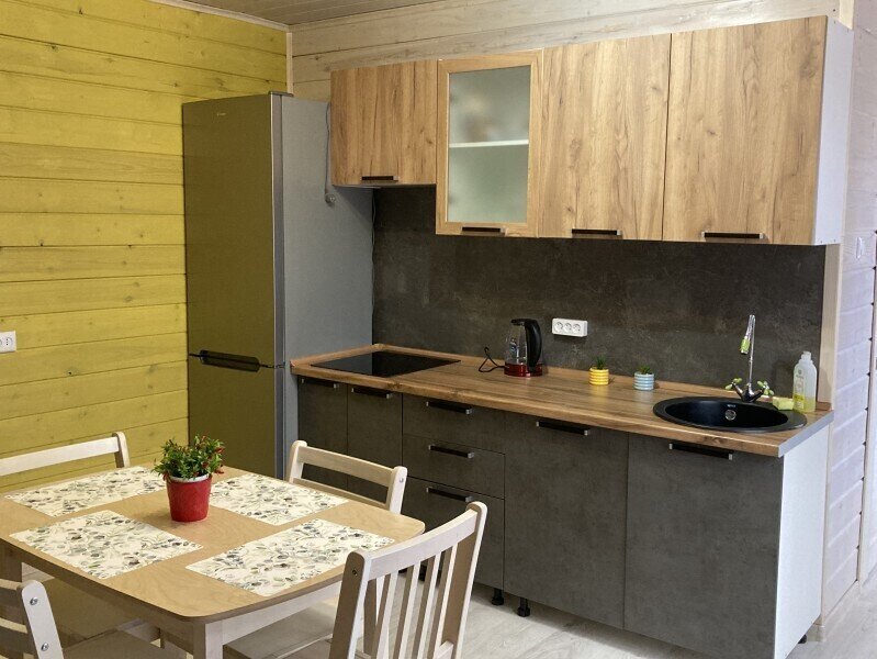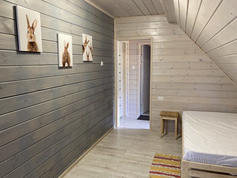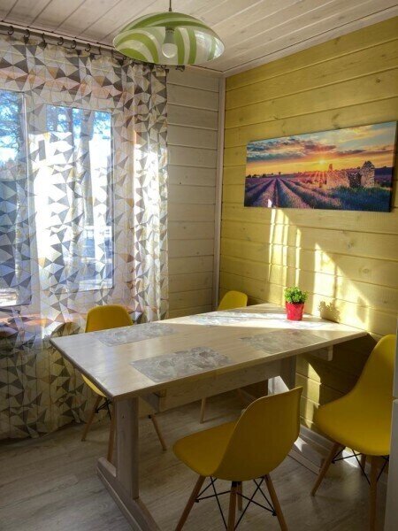Номер в новом большом отапливаемом доме, с отдельным входом, для проживания до четырех гостей. В номере одна спальня, в которой две односпальные кровати ( спальное место 90 см) и диван кровать (спальное место 110 см). В кухне холодильник, электрическая варочная панель на 3 конфорки, электрический чайник, телевизор с плоским экраном, обеденная зона, посуда и кухонные принадлежности. Вход в санузел и душевую из спальни. На веранде стол и стулья. Возможно предоставление детской кроватки за дополнительную плату. Возможно проживание с домашними животными.