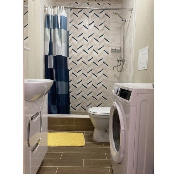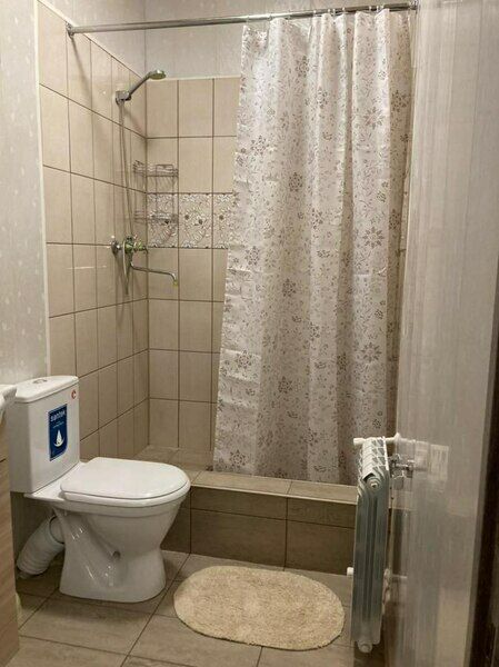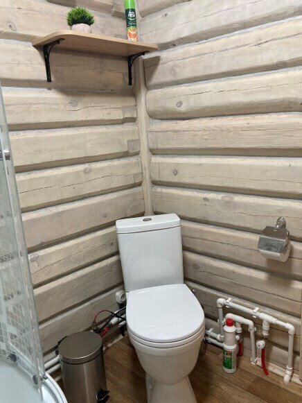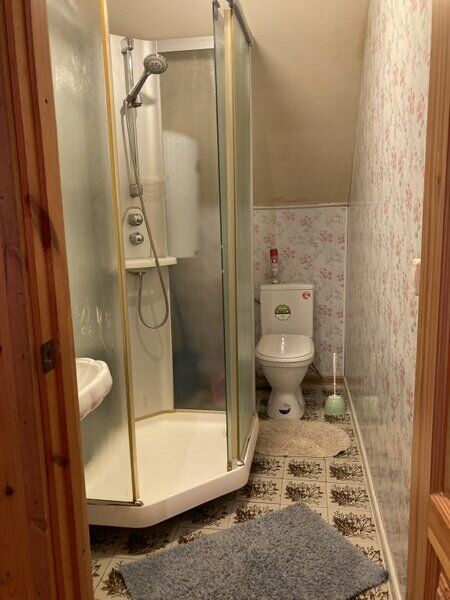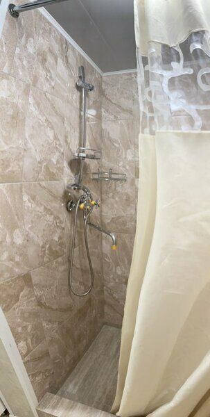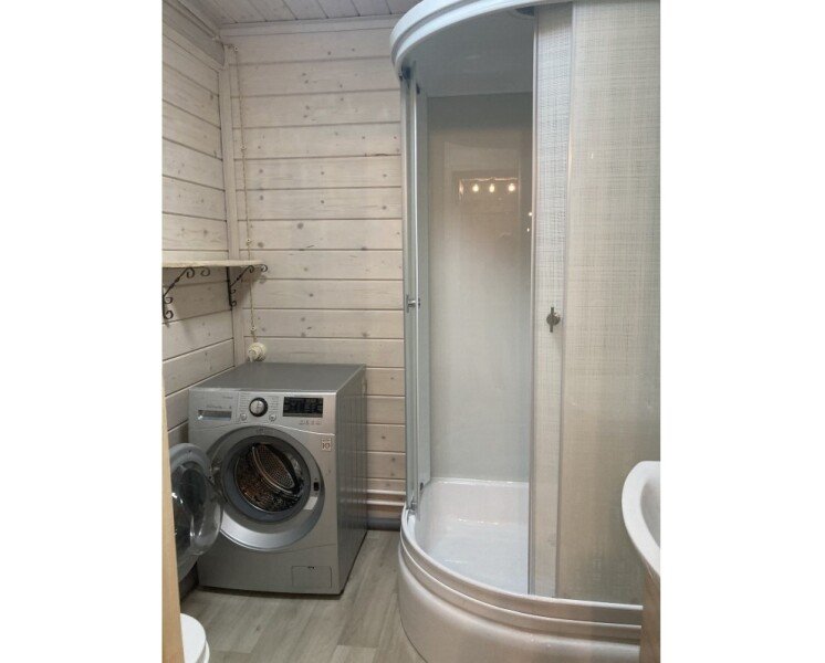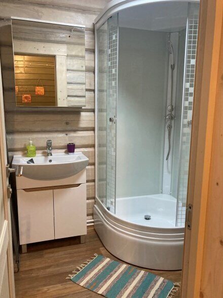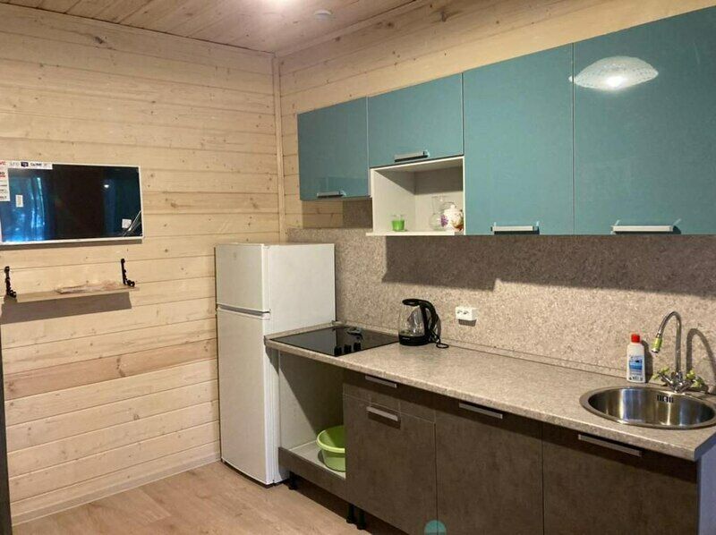 Кухня — холодильник, электрическая плита, электрический чайник, обеденная зона, посуда, кухонные принадлежности. Собственный санузел с душевой кабиной.