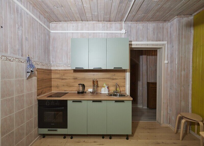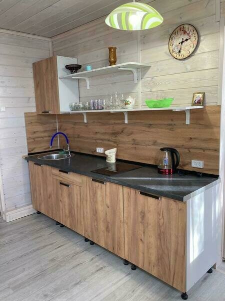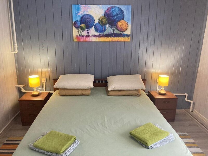 Кухня — двухкомфорочная электрическая варочная панель, духовой шкаф, холодильник, микроволновка, электрический чайник, посуда. Душ/туалет. Возможно размещение с животными.