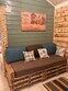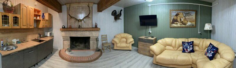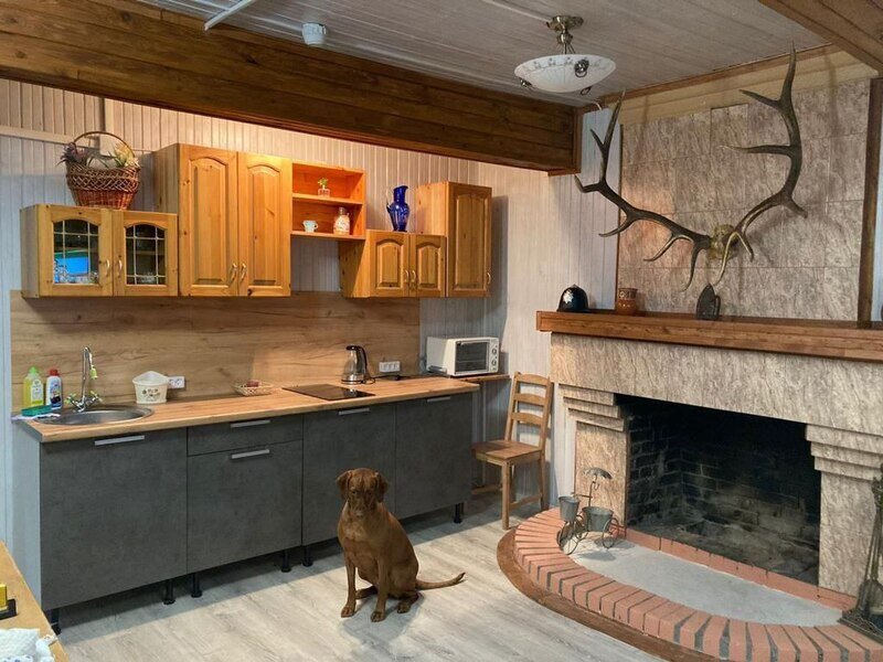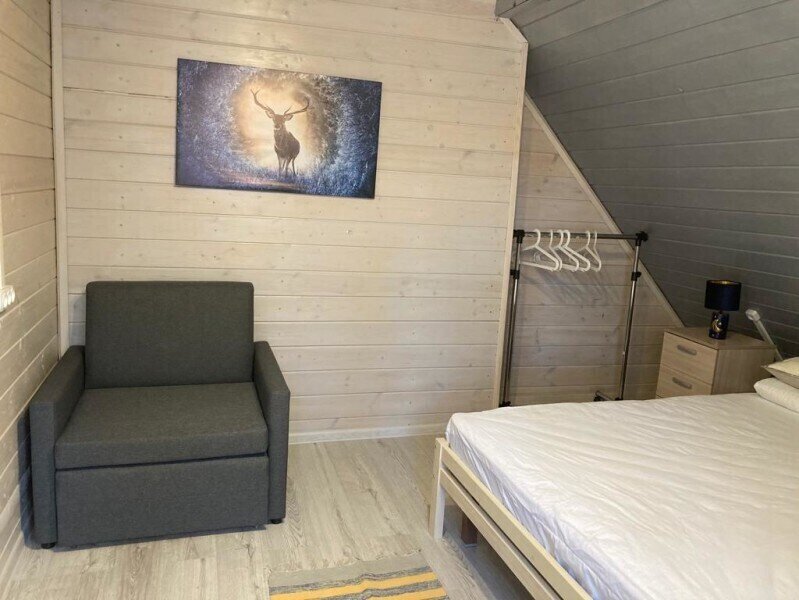 Двухкомнатный номер на первом этаже, 40м2. Для 3-х местного размещения (возможно предоставление дополнительного спального места раскладушка). В спальне двуспальная кровать, спальное место 160 см. Кухня-гостиная: угловой диван- кровать, кухонный уголок оснащён электрической варочной панелью на 2 конфорки, электрический чайник, электрическая печка, набор посуды. В номере имеется камин. Душ/туалет. Терраса. Размещение с животными Не допускается.