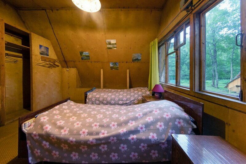 В домике одна спальня - три односпальные кровати ( спальное место 80см).