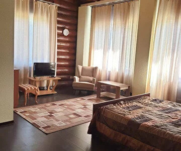 На территории комплекса предоставляются просторные и уютные однокомнатные и двухкомнатные номера со всеми удобствами. Здесь также есть русская парная баня и собственный песчаный пляж. Для любителей рыбалки доступна аренда лодочных моторов, а также возможность ловли рыбы на поплавочную удочку и спиннинг.