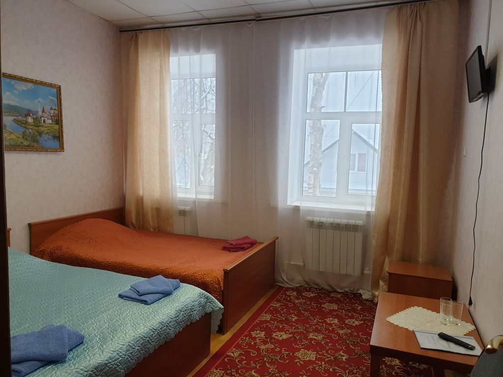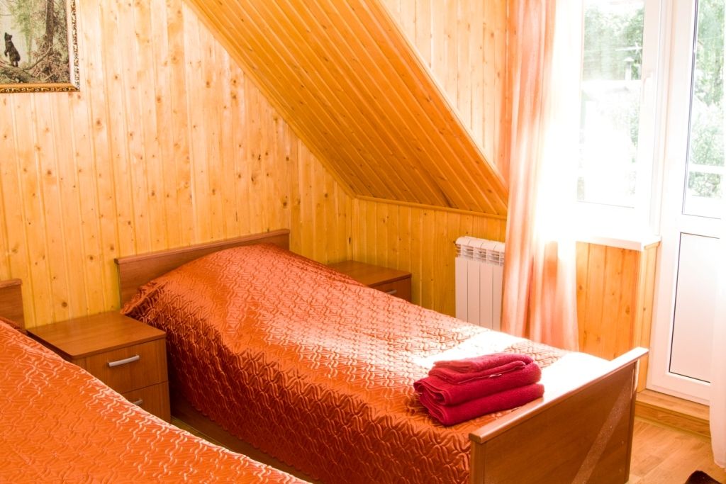 В номере: две односпальные кровати, душ или душевая кабинка, горячая, холодная вода, сан.узел, в некоторых номерах балкон, телевизор, шкаф, тумба прикроватная, журнальный столик.