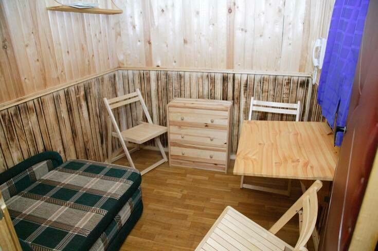 Вагончик двухкомнатный с туалетом и прихожей (удобен для молодоженов или семейной пары с ребенком). Есть двуспальная кровать, диван, стол.
