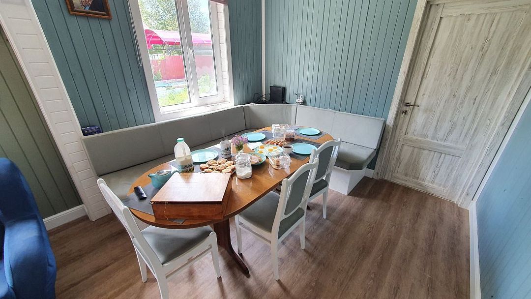 В коттедже 2 жилых этажа. На первом этаже расположена большая кухня-столовая, (кухня оборудована всей необходимой и новейшей техникой: два двухкамерных холодильника, газовая плита, микроволновая печь, духовой шкаф, вытяжка, чайник, термопод, вся необходимая посуда на 10 персон), общей площадью 25 кв.м., две спальни, совмещенный санузел, гостиная 60кв.м., для работы, отдыха и просмотра фильмов. (оборудована: TV LG-4K 82, возможность подключения караоке, X-BOX, данное помещение может быть оборудовано под офис).