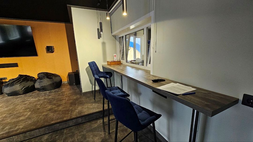 Гостиная 60кв.м., для работы, отдыха и просмотра фильмов (оборудована: TV LG-4K 82, возможность подключения караоке, X-BOX, данное помещение может быть оборудовано под офис).