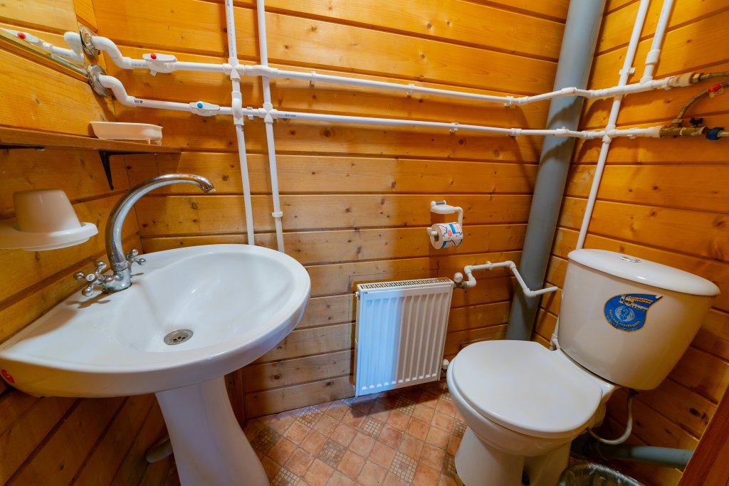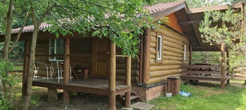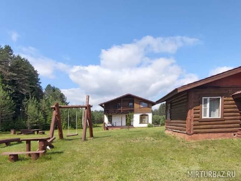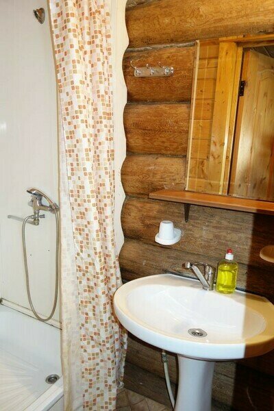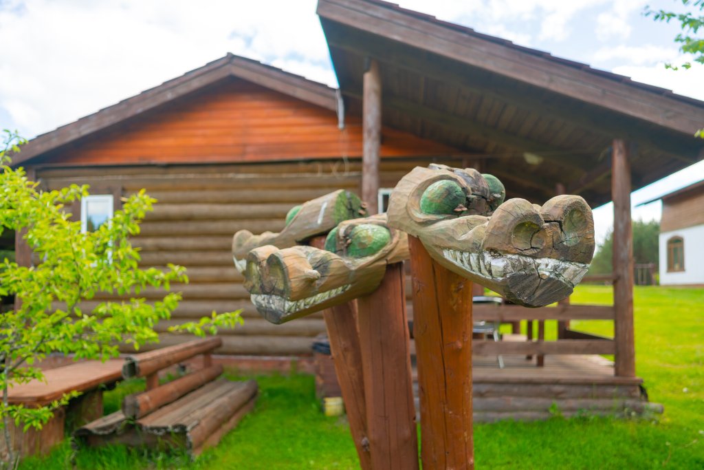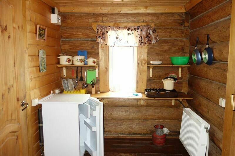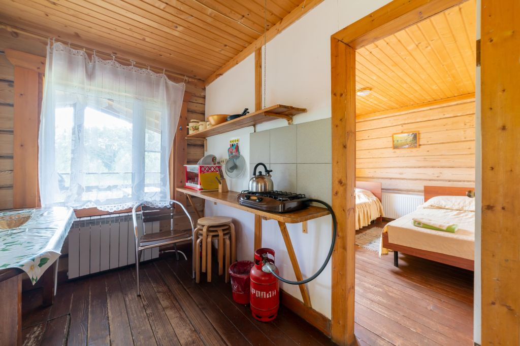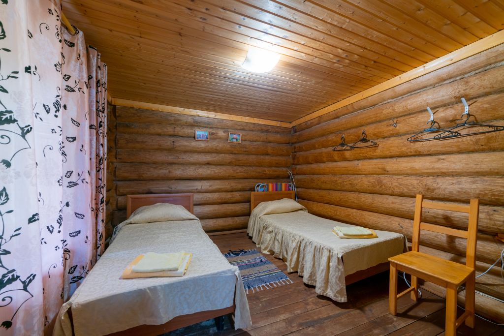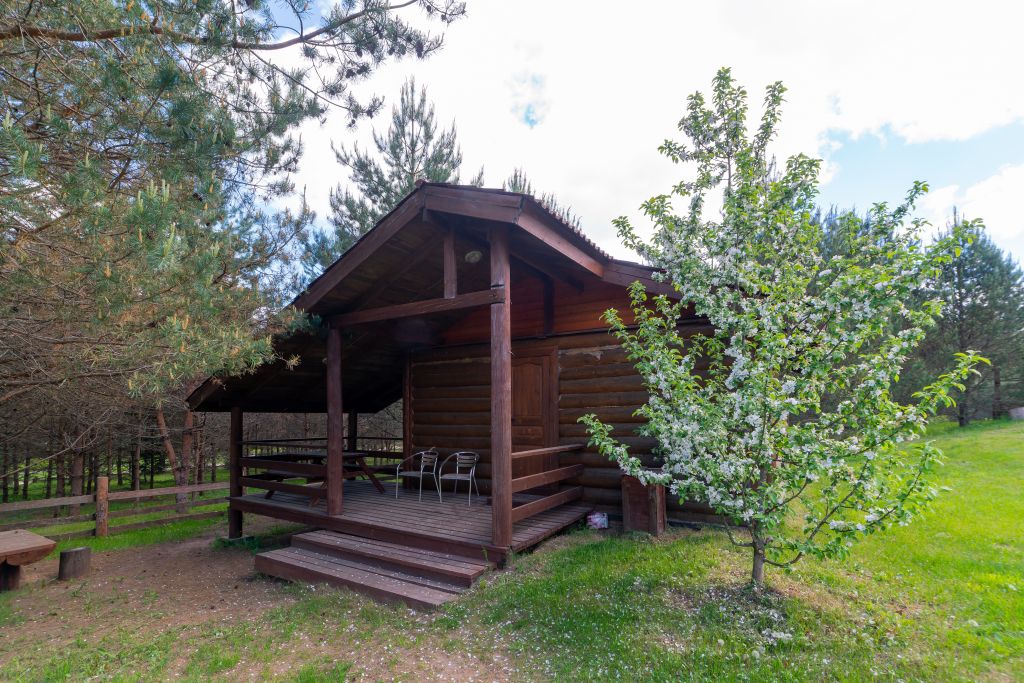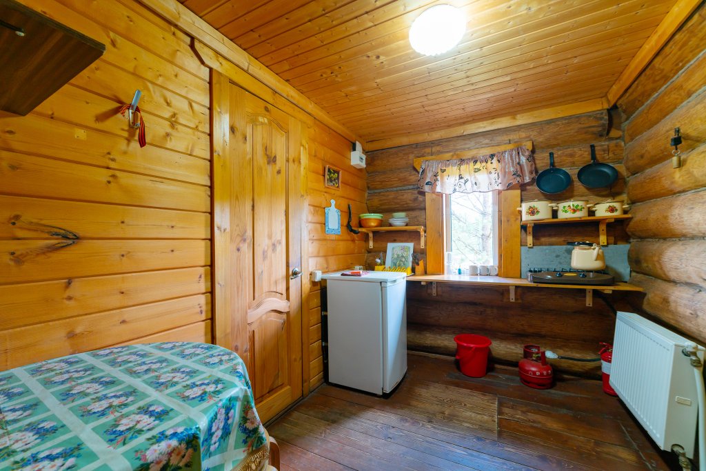 Для размещения гостей оборудованы 5 бревенчатых домиков, в которых есть все необходимое для комфортного проживания на природе.