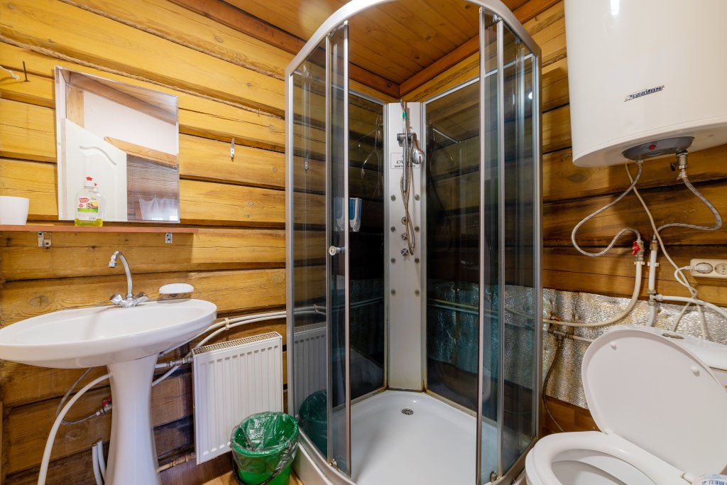 Санузел с душевой кабиной. Электрический водонагреватель.