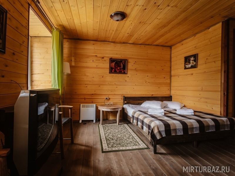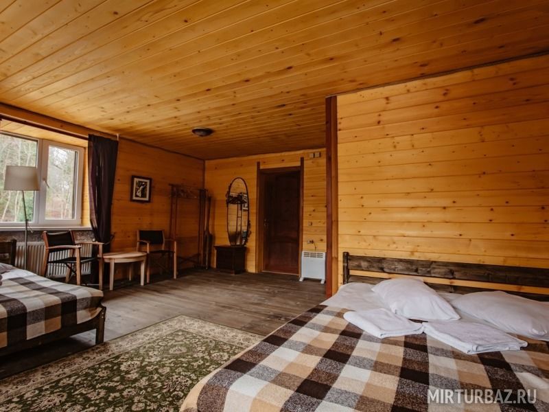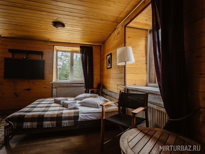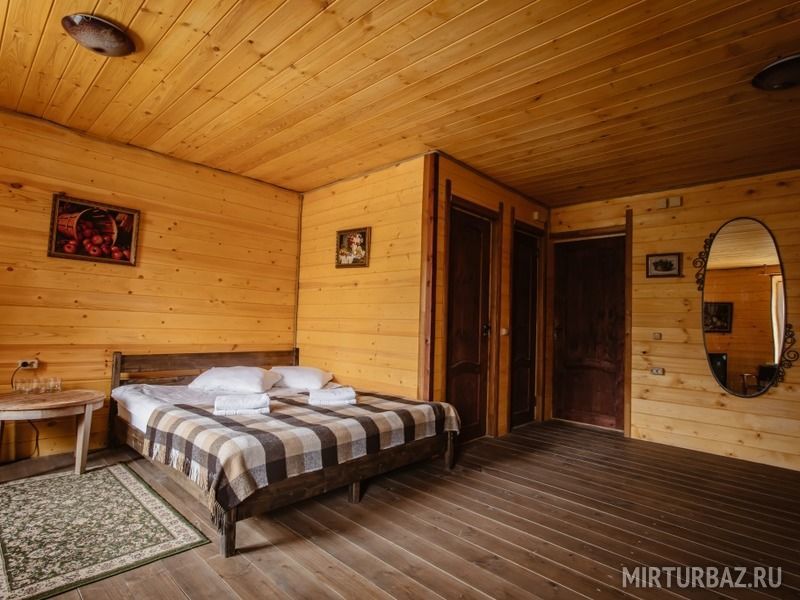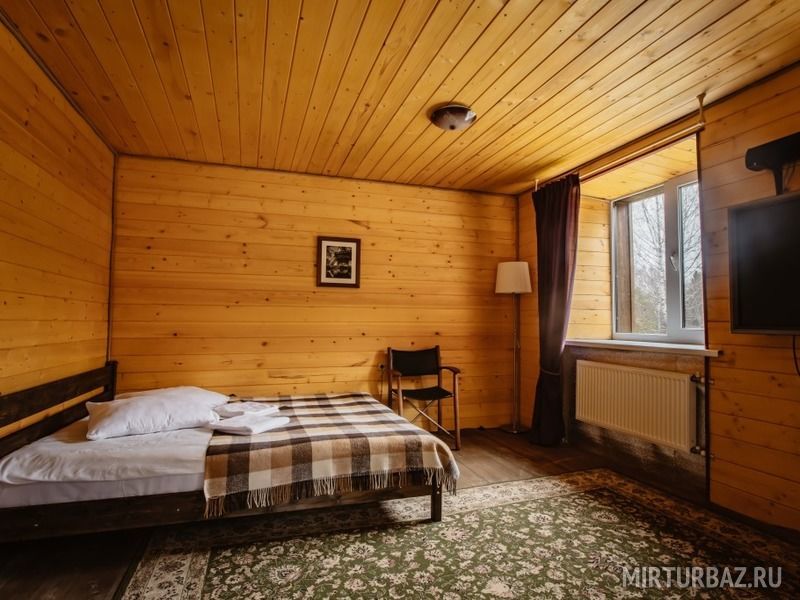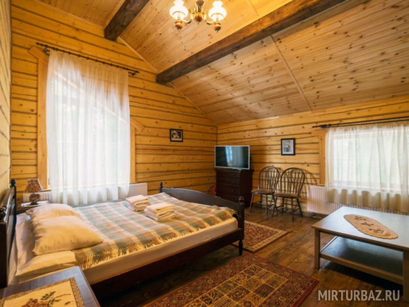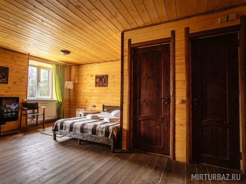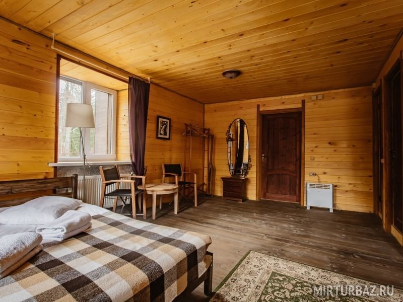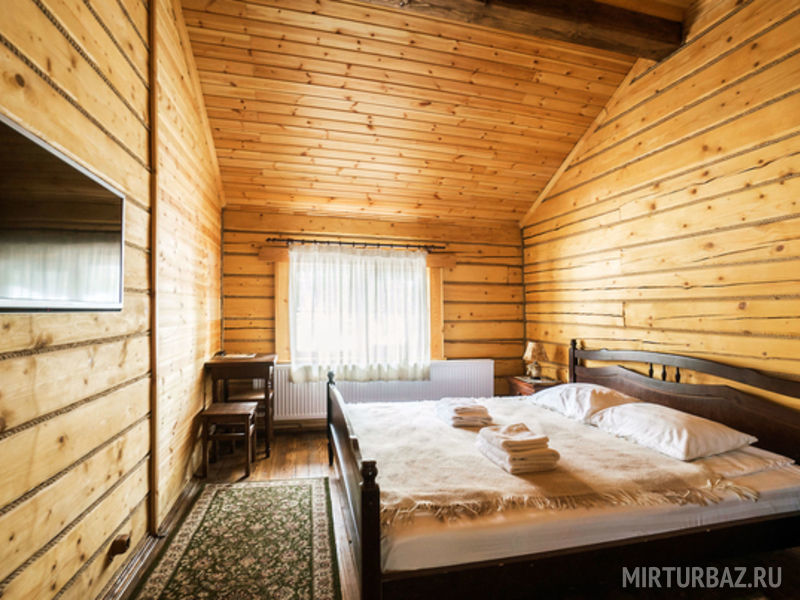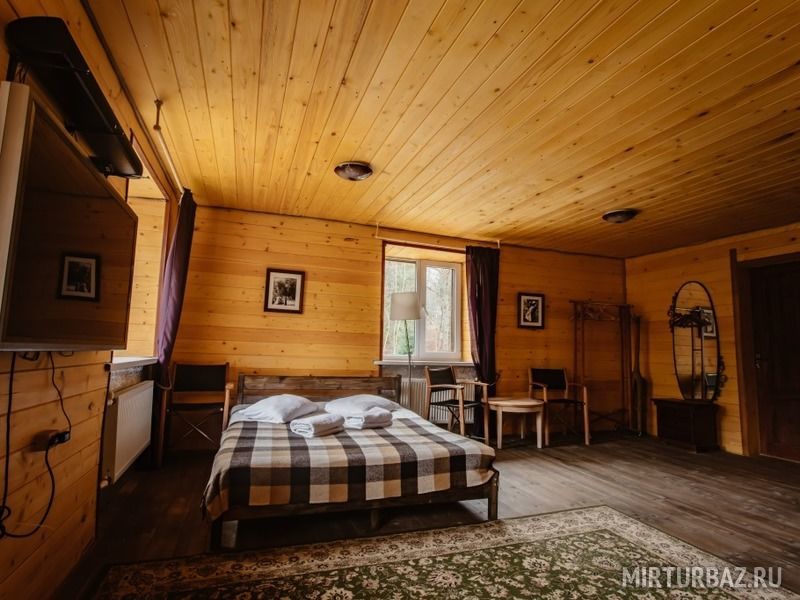 Просторный номер с деревянной отделкой. В номере: