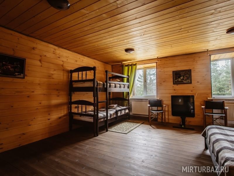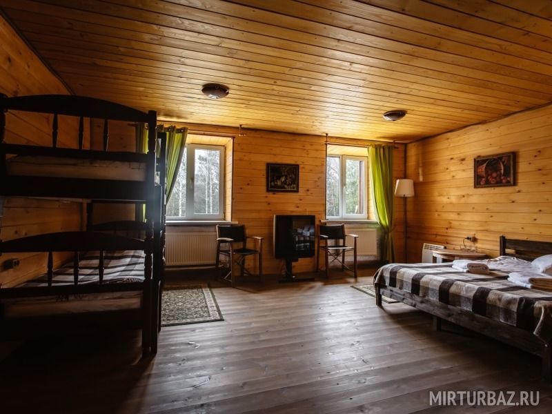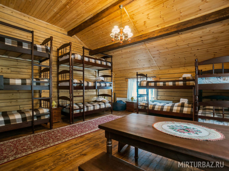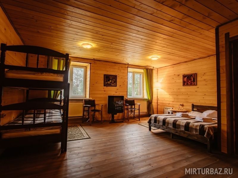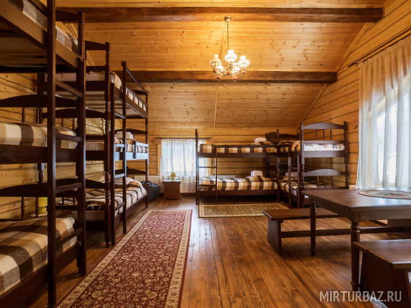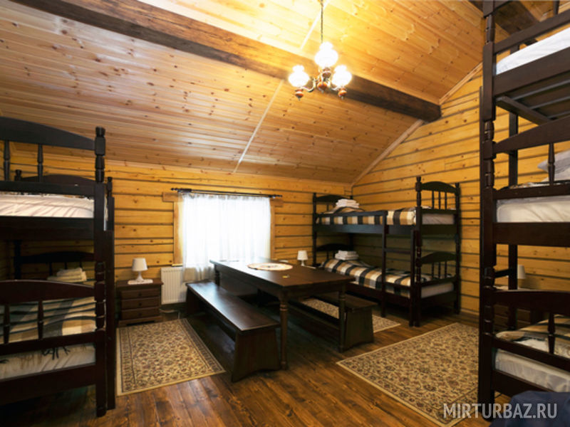 Просторный номер для большой компании с двухъярусными кроватями. В номере:
