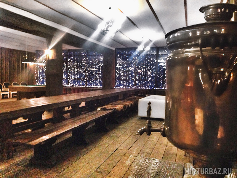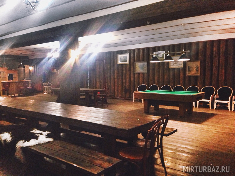 — Большой стол со скамьями;