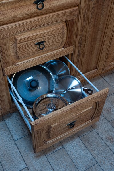 Посуда для приготовления: кастрюли 3 шт, сковорода, комплект кухонных принадлежностей для готовки (лопатка 2шт, половник, набор ножей 3 шт, разделочная доска 2 шт).