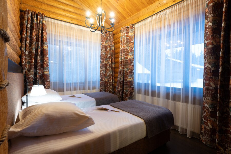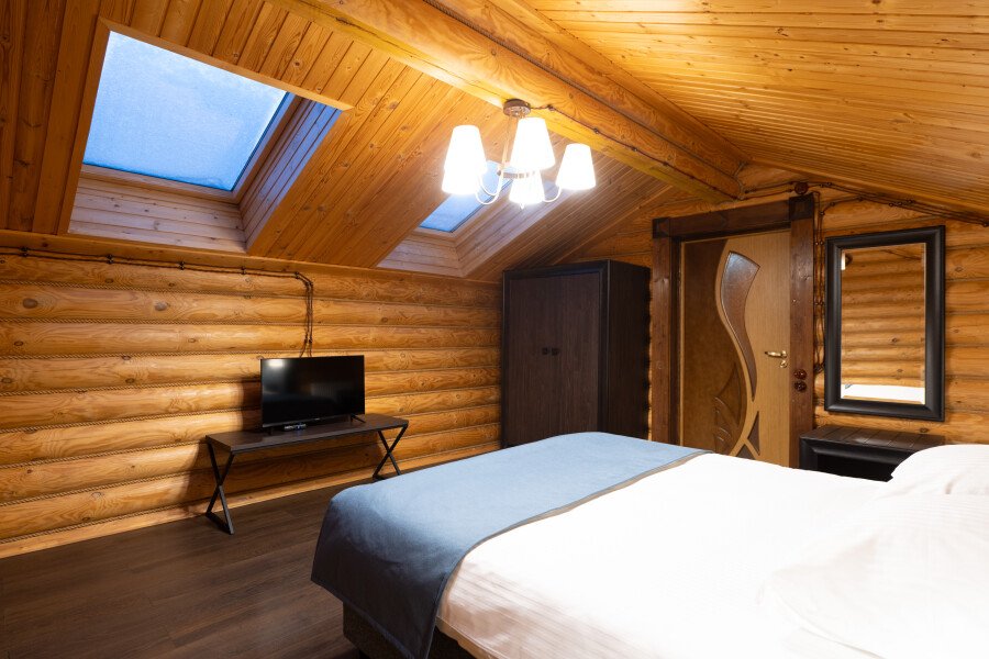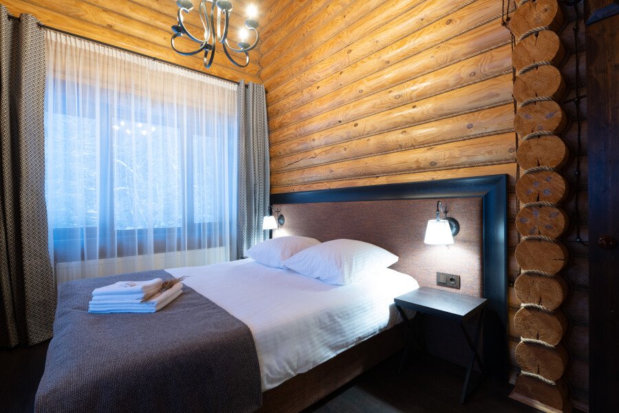 Одна двуспальная кровать, одна диван-кроватьКоттедж ВИП №1