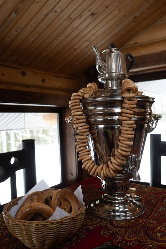 Чаепитие, дарующее тепло и умиротворение, сопровождается разнообразными закусками: сладкими и солеными пирогами, сушками, баранками, пряниками, вареньем и медом. Есть возможность испечь пироги по предварительному запросу.