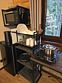 стол, холодильник, микроволновая печь, чайник, столовая посуда, вода