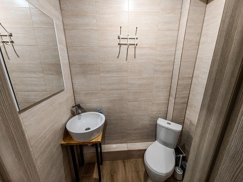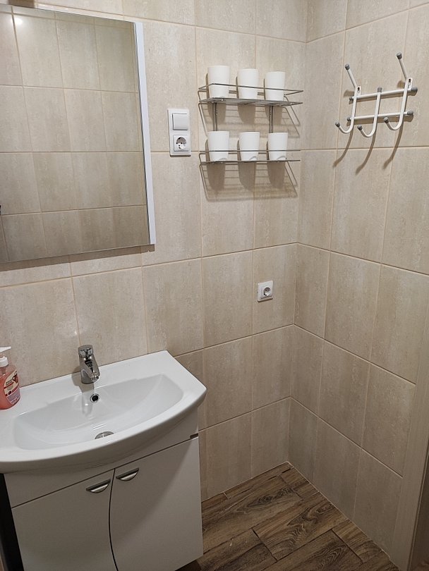 Гости могут готовить сами на полностью оборудованной кухне с электрической плитой, микроволновкой, чайником и посудой. В окрестностях есть круглосуточные магазины, что удобно для покупки продуктов.
