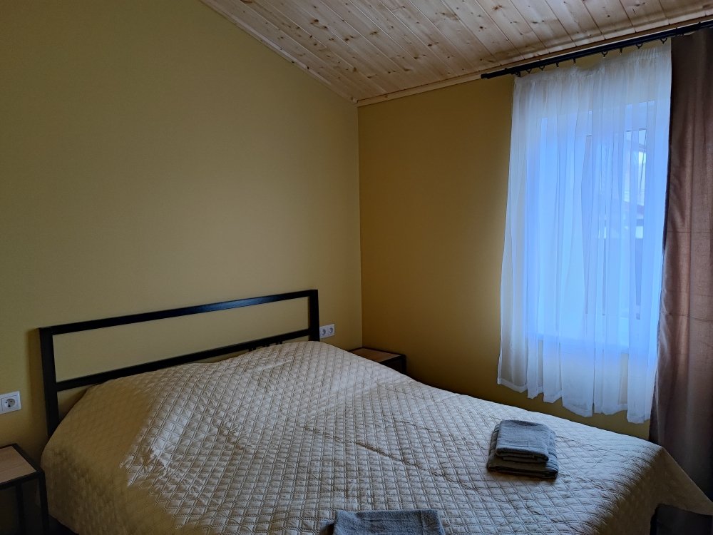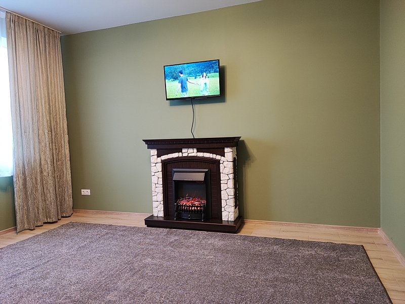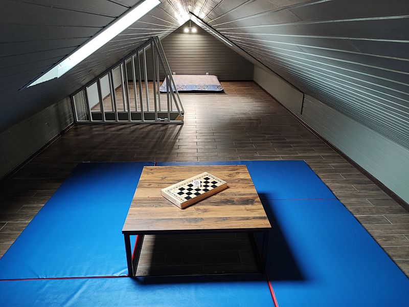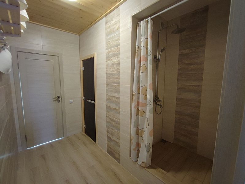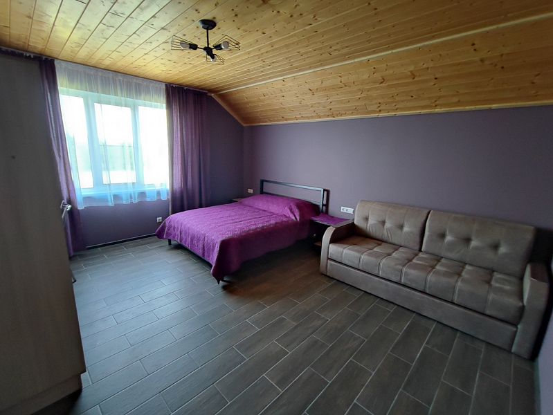 - В доме: просторный зал с телевизором и аудиосистемой, камин, кухня (холодильник, электроплита, микроволновка, посуда), сауна с душем, 3 санузла, мансарда, стиральная машина (для длительного проживания), wi-fi;