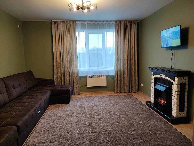 В доме: просторный зал с телевизором и аудиосистемой, камин, кухня (холодильник, электроплита, микроволновка, электрочайник, посуда, посудомоечная машина), сауна с душем, санузел, стиральная машина, тёплый пол, wi-fi, 3 спальни с двухместными кроватями (6 спальных мест), дополнительное размещение на диван-кроватях (4 спальных места).