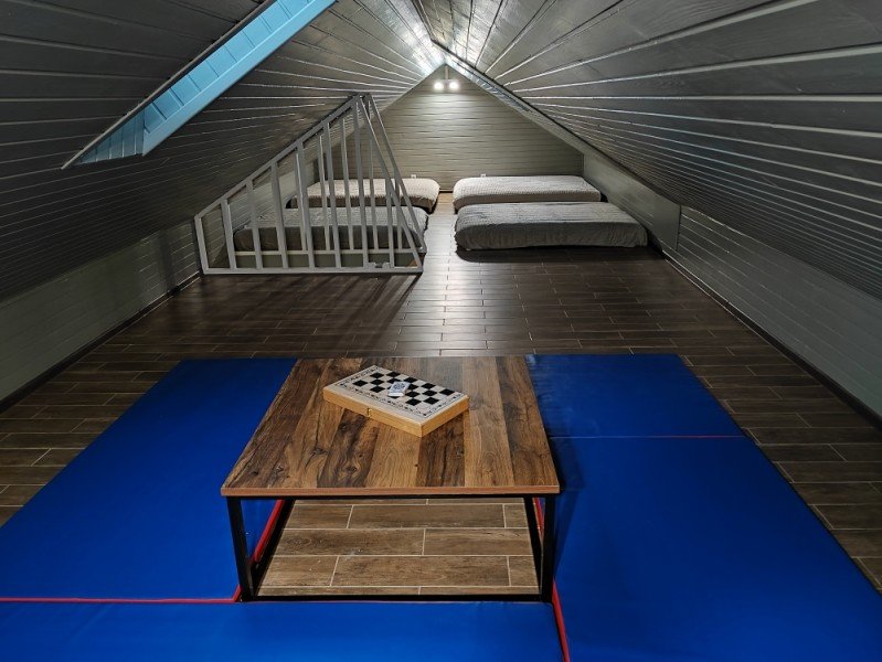 - Дополнительные спальные места: диван-кровати (5 спальных мест) и двуместные надувные матрасы;