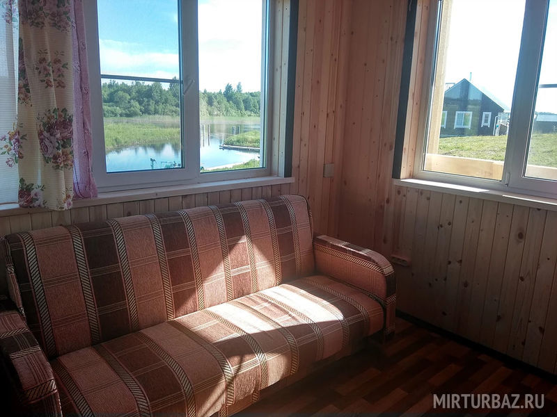 Дом находится в 20 метрах от озера, в доме 2 отдельные спальни, где могут разместится до 8 человек, кухня, большой холодильник с морозильной камерой, душ, туалет, интернет, телевизор. Есть свой причал, лодки, моторы, баня, мангал, коптильня, можно заказать катер для прогулок по озеру и островам.