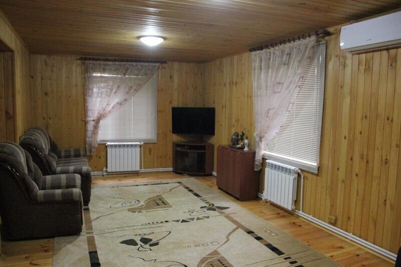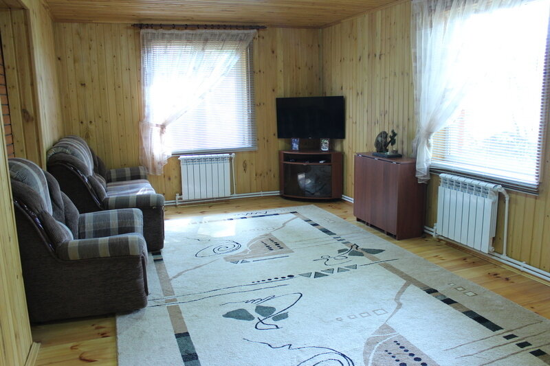 В доме есть всё, что нужно для отдыха в большой компании: необходимый набор посуды, холодильник, плита, москитные сетки на окнах, отопление, кондиционер, одеяло, подушки, постельное белье, полотенца, мягкий свет, тёплые пледы, электрический чайник, дополнительная кровать на весь срок проживания. В доме 2 спальни, кухня, комната общего отдыха. Дом на 6-7 мест.