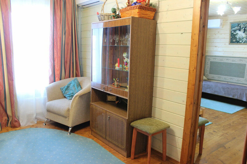 В доме есть всё, что нужно для отдыха в небольшой компании: необходимый набор посуды, холодильник, плита, москитные сетки на окнах, отопление, кондиционер, одеяло, подушки, постельное белье, полотенца, мягкий свет, тёплые пледы, электрический чайник, дополнительная кровать на весь срок проживания. В доме: спальня, кухня. Дом на 2-3 места.