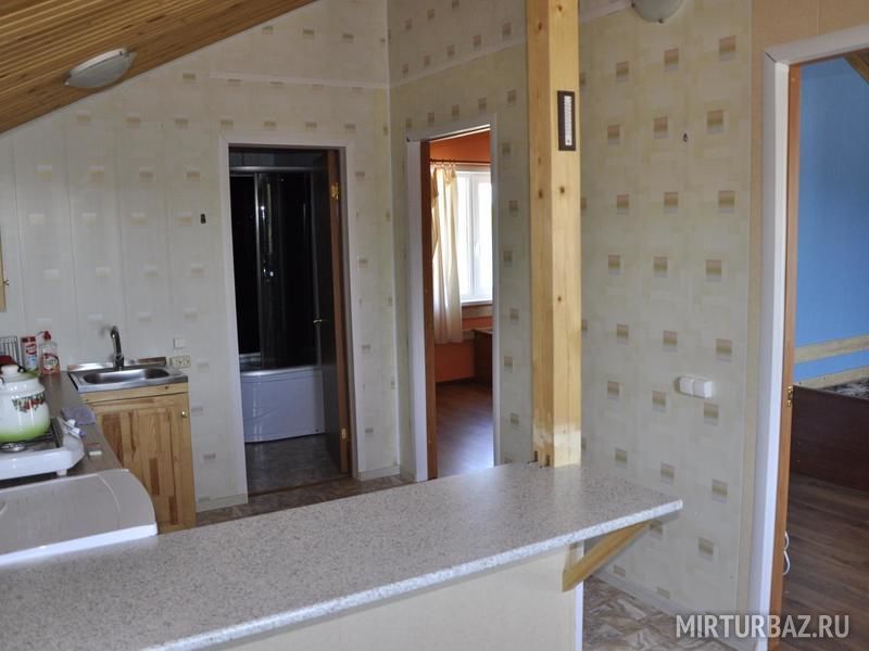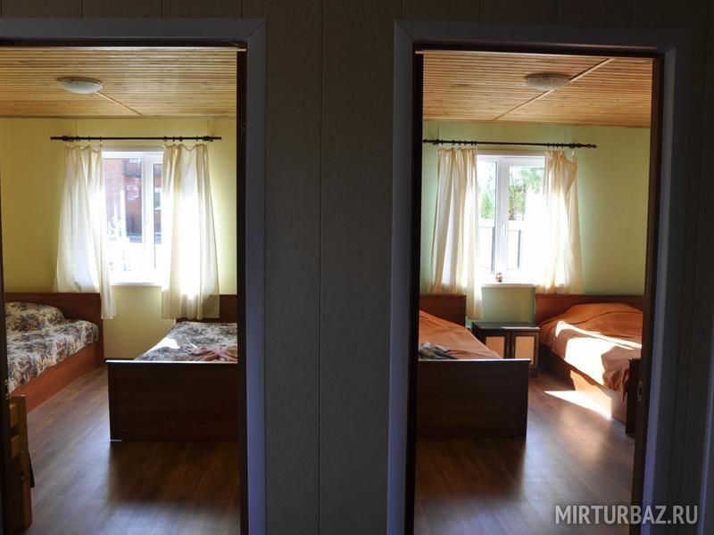 На каждом этаже 4-х местный 2-х комнатный номер со всеми удобствами, в том числе полностью оборудованная кухня.